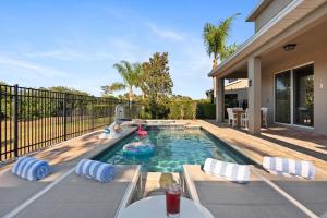 Tento prázdninový dům má 5 ložnice, 5 koupelny, ložní prádlo, ručníky, TV s plochou obrazovkou s kabelovými programy, jídelní část a kuchyň s kompletním vybavením. Ubytování Magical Getaway! Pool, Spa, Game Room, Near Disney nabízí také terasu s výhledem do zahrady. Koupelna v Magical Getaway! Pool, Spa, Game Room, Near Disney disponuje sprchou, pračkou, fénem a toaletními potřebami zdarma.