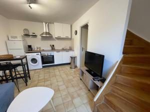 Featuring 1 bedroom and 1 bathroom with a shower, this holiday home offers a well-fitted kitchen and a terrace. The holiday home's kitchen, which features a refrigerator and a microwave, is available for cooking and storing food. The holiday home provides a washing machine, a private entrance, a tea and coffee maker, a flat-screen TV, as well as garden views. V této ubytovací jednotce se nachází 2 postele.