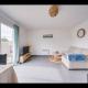 Diese Villa bietet eine Terrasse, 1 Schlafzimmer, ein Wohnzimmer und eine gut ausgestattete Küche mit einem Kühlschrank und einem Ofen. Für zusätzlichen Komfort kann die Unterkunft Handtücher und Bettwäsche gegen Aufpreis bieten.