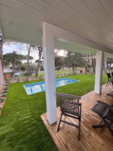 Pokoje: 1This holiday home's standout feature is the private pool. Boasting a private entrance, this air-conditioned holiday home includes a kitchen, 2 bedrooms and 2 bathrooms with a shower and a hairdryer. In the fully equipped kitchen, guests will find a stovetop, a refrigerator, a dishwasher and kitchenware. Featuring a terrace with garden views, this holiday home also offers a washing machine and a flat-screen TV with cable channels. V této ubytovací jednotce se nachází 2 postele.