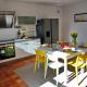 Prázdninový dům v ubytování má 4 ložnice, 2 koupelny, plně vybavenou kuchyň s jídelním koutem a lednicí a obývací prostor s TV. Koupelna v Maison familiale-Surf House, plage de Sainte Barbe je zařízena vanou, sprchou a fénem.