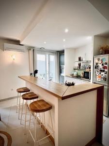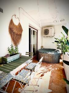 This holiday home provides a hot tub. The holiday home's kitchen is available for cooking and storing food. Featuring a terrace, this holiday home also offers air conditioning, a washing machine and a flat-screen TV. The unit provides 3 beds.