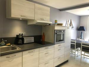 La casa en Maison 5 pers avec piscine chauffée, près plage Sarzeau - FR-1-775-15 dispone de 2 dormitorios, TV, baño con ducha, lavadora y cocina equipada con nevera y lavavajillas.