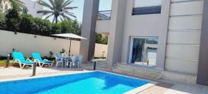 This villa's special features are the private pool and the hot tub. The villa's kitchen is available for cooking and storing food. The spacious villa offers air conditioning, a washing machine, heating as well as a terrace with garden views. The unit has 11 beds.
