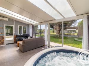 In der Unterkunft Maison spacieuse avec spa, salle de jeux, proche Angers - Idéal familles et pros! - FR-1-622-59 können Gäste einen Whirlpool nutzen.