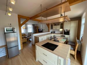 Guests will have a special experience as the apartment offers a fireplace. This spacious apartment consists of 1 living room, 3 separate bedrooms and 1 bathroom with a bath and a shower. Guests will find a stovetop, a refrigerator, a dishwasher and an oven in the fully equipped kitchen. The apartment also offers a barbecue. The apartment provides a washing machine, a private entrance, a coffee machine, a flat-screen TV with streaming services, as well as garden views. The unit offers 6 beds.