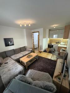 Boasting a private entrance, this apartment comes with 1 living room, 1 separate bedroom and 1 bathroom with a shower and a hairdryer. The fully equipped kitchen has a stovetop, kitchenware, an oven and an electric kettle. The apartment features a washing machine, soundproof walls, a seating area, a flat-screen TV with satellite channels, as well as mountain views. The unit is furnished with 4 beds.