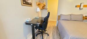 This room features a microwave, refrigerator, and coffee-making facilities.