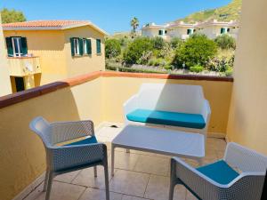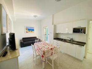 Marasusa Apartments Scirocco 225CW dispose de 2 chambres, une salle de bains, du linge de lit, des serviettes, une télévision à écran plat, un coin repas, une cuisine équipée et une terrasse avec vue sur la mer.