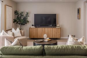 The spacious holiday home with a terrace and pool views has 5 bedrooms, a living room, a flat-screen TV, an equipped kitchen with a dishwasher and an oven, and 3 bathrooms with a bath. Towels and bed linen are offered in the holiday home at the property. @ Marbella Lane - Vibrant & Chic Designer Home also features a seating area and a fireplace.