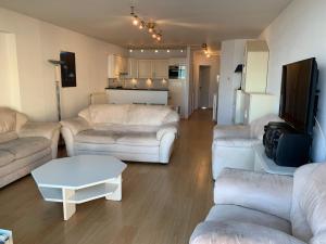The well-fitted kitchen has a stovetop, a refrigerator, a dishwasher and kitchenware. The spacious apartment features a private entrance, a coffee machine, a seating area as well as a terrace with sea views. The unit has 2 beds.