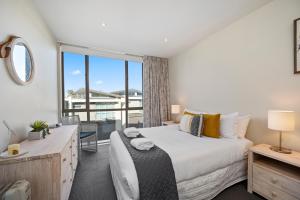 The spacious apartment with a balcony and lake views has 2 bedrooms, a living room, a flat-screen TV, an equipped kitchen with a dishwasher and a microwave, and 1 bathroom with a shower. Towels and bed linen are offered at the property. Marina View Apartment - Taupo includes an outdoor dining area.