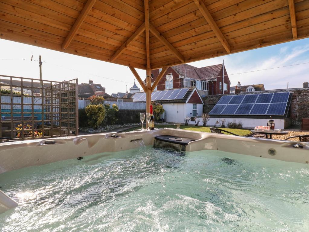 Guests will have a special experience as this holiday home features a hot tub and a fireplace. This spacious holiday home is comprised of 6 bedrooms, a seating area with a sofa and 4 bathrooms with a walk-in shower. The fully equipped kitchen features a stovetop, a refrigerator, a dishwasher and an oven. The holiday home offers a washing machine, a dining area, a wardrobe, a TV, as well as sea views. The unit offers 8 beds.