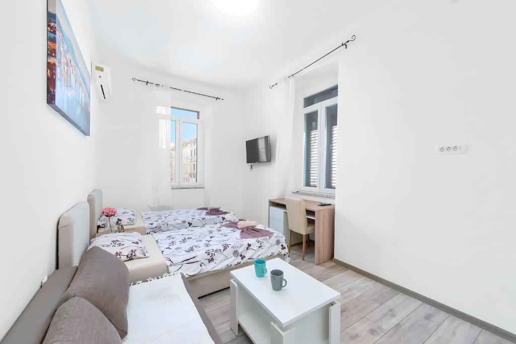 The twin/double room has a shared bathroom, air conditioning, a washing machine, as well as a seating area with a flat-screen TV. The twin/double room offers a wardrobe, an electric kettle, tumble dryer, a sofa and a TV. The unit has 3 beds.
