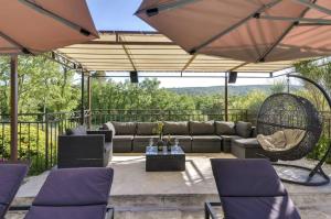 This luxurious holiday home has a pool with a view, a hot tub and a sauna. Boasting a private entrance, this spacious holiday home also comes with 8 bedrooms, a seating area and 8 bathrooms with a bath and a shower. Guests will find a stovetop, a refrigerator, a dishwasher and an oven in the fully equipped kitchen. The holiday home also includes a barbecue. The air-conditioned holiday home features a flat-screen TV with streaming services, a washing machine, soundproof walls, a tea and coffee maker as well as garden views. The unit has 19 beds.