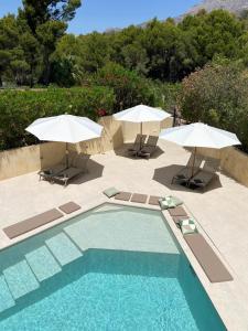 This apartment has a private entrance, kitchen and stovetop. This apartment is on the ground floor, mountain views from the pool.
