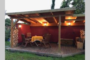 The fireplace is the standout feature of this holiday home. Boasting a private entrance, this holiday home also features 1 bedroom, a seating area and 1 bathroom with a walk-in shower and a hairdryer. Guests will find a stovetop, a refrigerator, kitchenware and a toaster in the fully equipped kitchen. The holiday home also comes with a barbecue. Featuring a terrace with garden views, this holiday home also features a tea and coffee maker and a flat-screen TV with satellite channels. The unit has 1 bed.