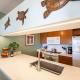 Dieses Ferienhaus verfügt über einen DVD-Player, hat eine Küche mit einem Kühlschrank, einem Geschirrspüler und einem Ofen, ein Wohnzimmer mit einem Sitzbereich und einem Essbereich, 1 Schlafzimmer und 2 Badezimmer mit einer Dusche und einer Badewanne. In diesem Ferienhaus werden Handtücher und Bettwäsche angeboten.
