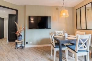 Apartmán MC Tourisme - Splendide & cosy appartement avec piscine, tennis & parking zahrnuje 1 ložnici, 1 koupelnu, ložní prádlo, ručníky, TV s plochou obrazovkou, jídelní kout a plně vybavenou kuchyň. Ubytování MC Tourisme - Splendide & cosy appartement avec piscine, tennis & parking nabízí také terasu s výhledem do zahrady. Koupelna je vybavená vanou.