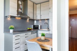 Pokoje: 1This apartment includes 1 living room, 1 separate bedroom and 1 bathroom with a shower. Meals can be prepared in the well-fitted kitchen, which is fitted with a stovetop, a refrigerator, a dishwasher and an oven. Boasting a balcony with sea views, this apartment also offers a washing machine and a TV. V této ubytovací jednotce se nachází 2 postele.
