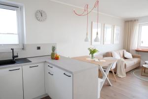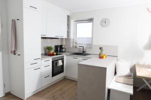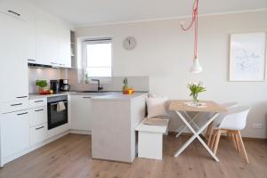 Apartmán Meerblick D9 mit Balkon und Schwimmbad zahrnuje 1 ložnici, plně vybavenou kuchyň s lednicí a myčkou a 1 koupelnu se sprchou. V apartmánu ubytování najdete TV s plochou obrazovkou a koupelnu s fénem.