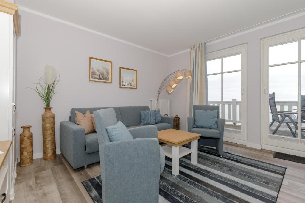 The apartment with a balcony and sea views has 1 bedroom, a living room, a TV, an equipped kitchen with a dishwasher and a microwave, and 1 bathroom with a shower. Meeresblick Meeresblick 324 includes an outdoor dining area.