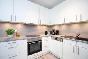 Apartament oferuje sypialnię, łazienkę z prysznicem oraz kuchnię z lodówką i zmywarką. Wyposażenie obejmuje także telewizor.