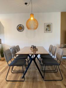 Dom wakacyjny MeerZeit 20 z 3 sypialniami oferuje WiFi, TV, pralkę oraz kuchnię z lodówką i zmywarką.