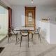 Tento apartmán má 1 ložnici, obývací prostor, kuchyň s kompletním vybavením včetně mikrovlnné trouby a varné desky a 1 koupelnu. Koupelna je vybavená sprchou.