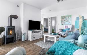 This apartment's standout features are the hot tub, sauna and fireplace. Guests will find a stovetop, a refrigerator, a dishwasher and kitchenware in the well-fitted kitchen. The apartment also has a barbecue. The spacious apartment offers a washing machine, a private entrance, a tea and coffee maker, a TV, as well as sea views. The unit offers 3 beds.