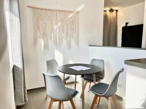 Questo appartamento ha 1 camera da letto, 1 bagno, lenzuola, asciugamani, una TV a schermo piatto, una zona pranzo, una cucina con utensili e una terrazza con vista sulla città.
