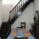 Es gibt einen Essbereich und eine Küche komplett ausgestattet mit einem Kühlschrank.