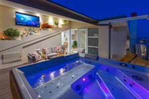 Guests will have a special experience as this apartment features a hot tub. This spacious apartment is comprised of 2 bedrooms, kitchen, a terrace and 2 bathrooms with a bidet. The well-equipped kitchen features a refrigerator, a dishwasher, an oven and a microwave. The air-conditioned apartment offers a flat-screen TV, a washing machine, a tea and coffee maker, a high chair for children as well as sea views. V této ubytovací jednotce je k dispozici 2 postele.