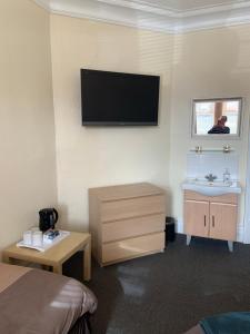 The quadruple room provides an electric kettle, a carpeted floor, heating and a flat-screen TV.