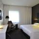 Nowoczesne pokoje zdobią elementy w kontrastujących ze sobą jasnych i ciemnych kolorach. Wyposażenie obejmuje telewizor z płaskim ekranem, biurko i klimatyzację. Łazienka została wyposażona w prysznic.