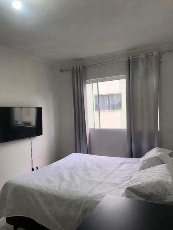 Zur Einrichtung des Mereles Hospedagem gehören ein Schlafzimmer, ein Flachbild-TV und eine Küche.
