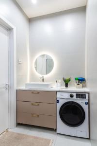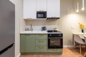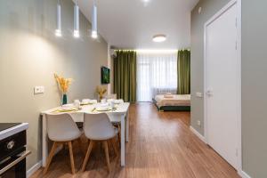 W apartamencie do dyspozycji gości przygotowano sypialnię (1), aneks kuchenny ze standardowym wyposażeniem, takim jak lodówka i mikrofalówka, a także łazienkę (1) z bidetem. Obiekt wyposażono w pralkę i telewizor z kanałami satelitarnymi. Ręczniki i pościel są dostępne w apartamencie Яркая студия в Meridian Apartments.