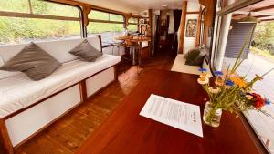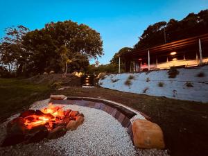 Guests will have a special experience as this holiday home provides a fireplace. This air-conditioned holiday home includes 1 living room, 2 separate bedrooms and 1 bathroom with a walk-in shower. Guests can make meals in the kitchen that is fitted with a stovetop, a refrigerator, kitchenware and an oven. The holiday home offers a washing machine, a tea and coffee maker, a seating area as well as a terrace with garden views. The unit has 5 beds.