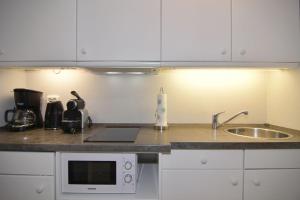 Apartmán má obývací prostor a koupelnu s fénem a sprchou. K vybavení kuchyně patří mikrovlnná trouba, toustovač a varná konvice.