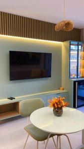 Apartmán má 1 ložnici, 1 koupelnu, ložní prádlo, ručníky, TV s plochou obrazovkou s kabelovými programy, kuchyň s kompletním vybavením a balkon s výhledem na moře. V koupelně ubytování Meu Xilo, Studio Frente Mar em Muro Alto no Cais Eco Residência nechybí sprcha ani fén.