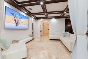 Diese Villa mit Klimaanlage besteht aus 5 Schlafzimmern, einem Wohnzimmer, einer voll ausgestatteten Küche mit einem Kühlschrank und einer Kaffeemaschine sowie 4 Badezimmern mit einer Dusche und einem Whirlpool. In dieser Villa werden Handtücher und Bettwäsche angeboten.
