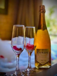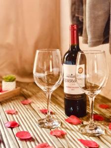 Camere: 1The hot tub and fireplace are the standout features of this holiday home. Boasting a private entrance, this holiday home comes with 1 living room, 1 separate bedroom and 2 bathrooms with a bath and a shower. Guests will find a stovetop, a refrigerator, kitchenware and an oven in the fully equipped kitchen. The holiday home also includes a barbecue. Featuring a balcony with garden views, this holiday home also features a seating area and a flat-screen TV with cable channels. The unit has 2 beds.
