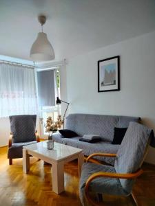 Cet appartement au Mieszkanie w Centrum inclut un balcon, une chambre, un salon et une cuisine équipée avec réfrigérateur et four. Une télévision à écran plat est disponible dans l'établissement.