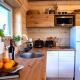 Dom wakacyjny w Milkės Karibai - poilsio namelis su sauna ir kubilu mieści sypialnię, salon, kuchnię z lodówką i ekspresem oraz łazienkę z prysznicem. W domu wakacyjnym Milkės Karibai - poilsio namelis su sauna ir kubilu dla Gości przygotowano ręczniki i pościel.