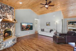 The fireplace is the standout feature of this holiday home. Boasting a private entrance, this spacious holiday home also features 3 bedrooms, a seating area and 2 bathrooms with a bath and a shower. Guests will find a stovetop, a refrigerator, a dishwasher and kitchenware in the well-equipped kitchen. The holiday home also comes with a barbecue. Featuring a balcony with mountain views, this holiday home also features a washing machine and a flat-screen TV with cable channels. The unit is furnished with 4 beds.