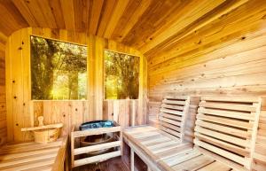 Guests will have a special experience as this holiday home provides a hot tub, a sauna and a fireplace. This spacious holiday home is comprised of 1 living room, 2 separate bedrooms and 1 bathroom with a walk-in shower and free toiletries. Guests will find a stovetop, a refrigerator, a dishwasher and kitchenware in the well-fitted kitchen. The holiday home also has a barbecue. Featuring a terrace with garden views, this holiday home also offers a private entrance and a flat-screen TV with streaming services. The unit offers 3 beds.