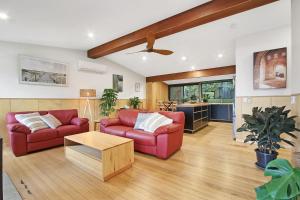 This holiday home features a fireplace. This air-conditioned holiday home features 1 living room, 3 separate bedrooms and 2 bathrooms with a hairdryer. Guests will find a stovetop, a dishwasher, an oven and a microwave in the kitchen. The holiday home also comes with a barbecue. This holiday home has a washing machine, tumble dryer and a TV. The unit has 4 beds.