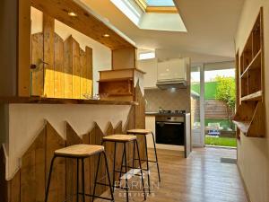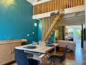 The holiday home with a terrace and garden views features 1 bedroom, a living room, a flat-screen TV, an equipped kitchen with a dishwasher and an oven, and 1 bathroom with a shower. Towels and bed linen are provided in the holiday home at 7min de la plage - Maison typique - Cour privative. 7min de la plage - Maison typique - Cour privative includes an outdoor dining area.
