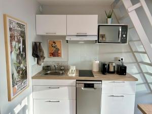 Die Ferienwohnung Mini duplex vue imprenable bietet einen Balkon, 1 Schlafzimmer, ein Wohnzimmer sowie eine Küche mit Kühlschrank und Geschirrspüler. Es gibt einen Flachbild-TV.
