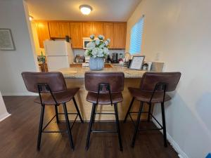 This family room's special feature is the fireplace. The family room features a seating area, a dining area, as well as a private bathroom featuring a bath and a shower. Guests will find a stovetop, a refrigerator, kitchenware and an oven in the fully equipped kitchen. The family room also offers a barbecue. The spacious air-conditioned family room provides a flat-screen TV with streaming services, a washing machine, a private entrance, a tea and coffee maker as well as garden views. The unit offers 3 beds.